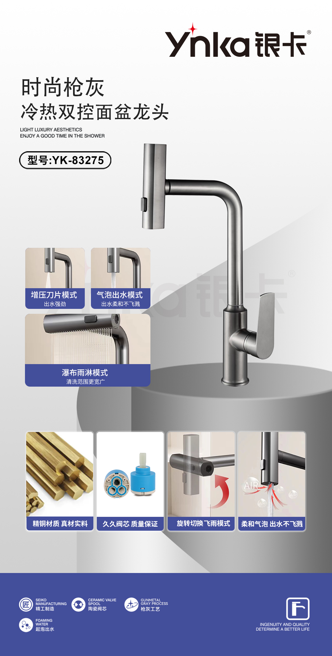 汉斯抽拉单孔(枪灰)YK-83270
