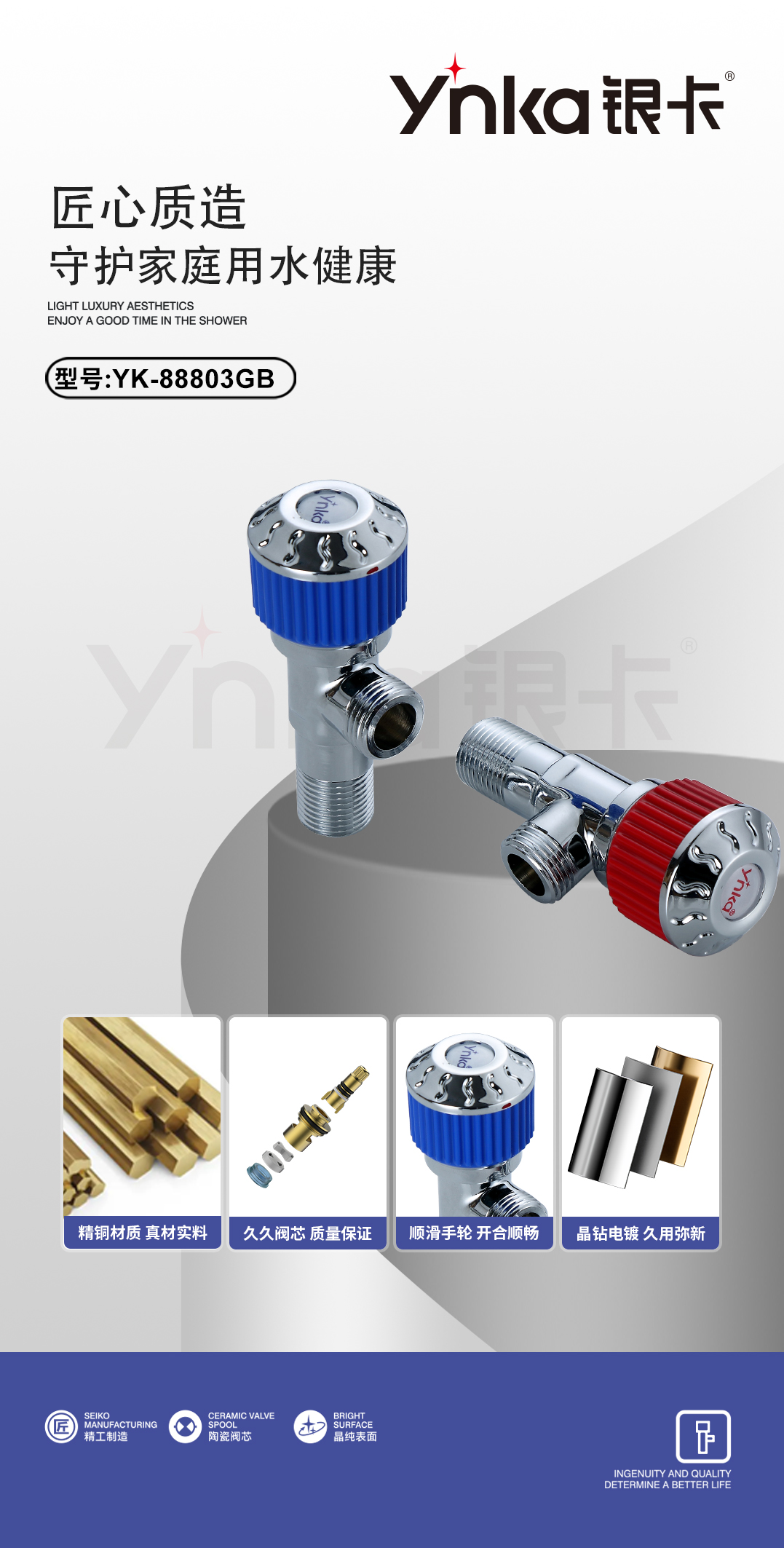 YK-88803GB高标铜角阀(S红蓝轮)