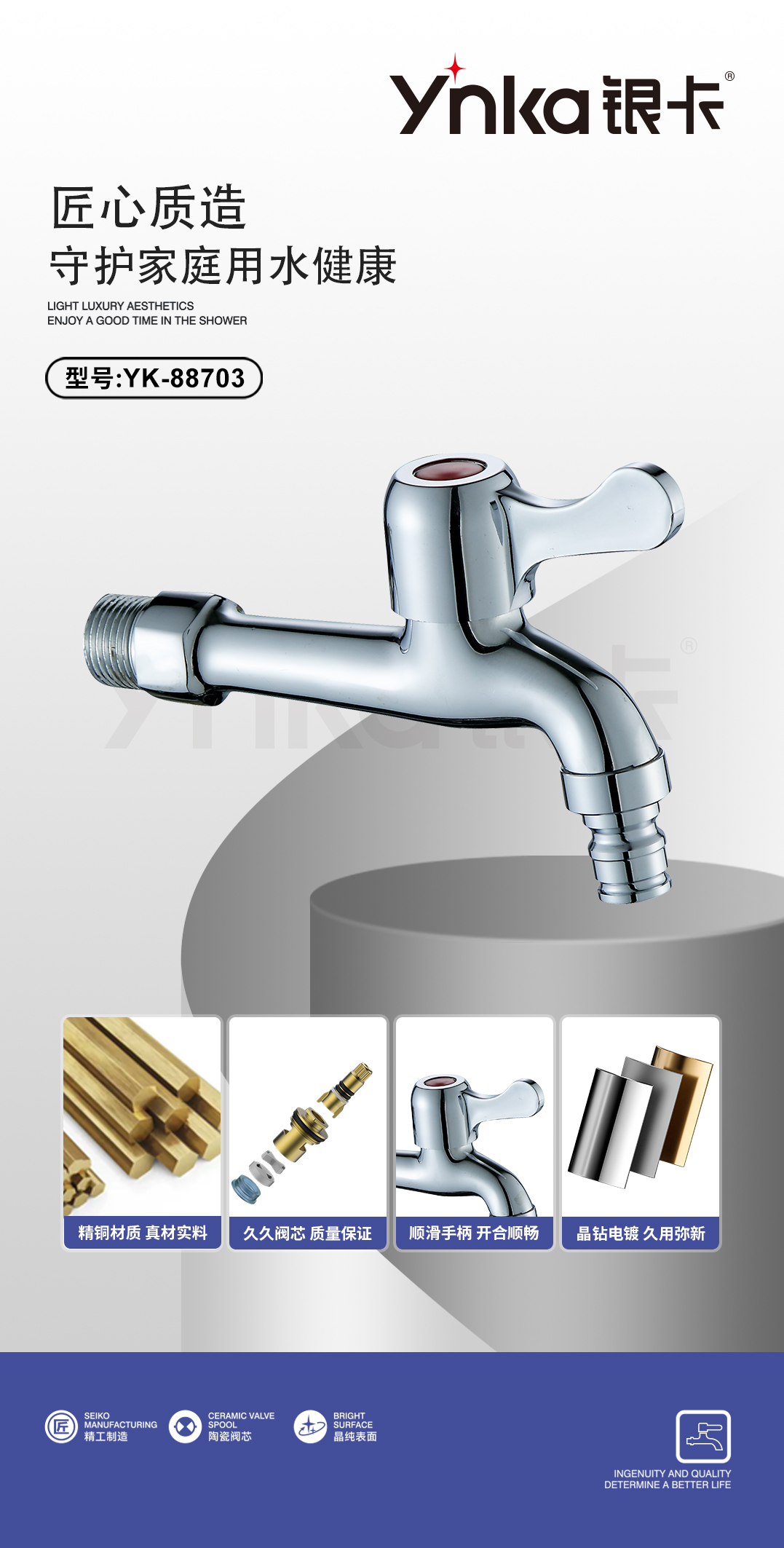 YK-88703铜洗衣机水咀塑料白板手柄(长)