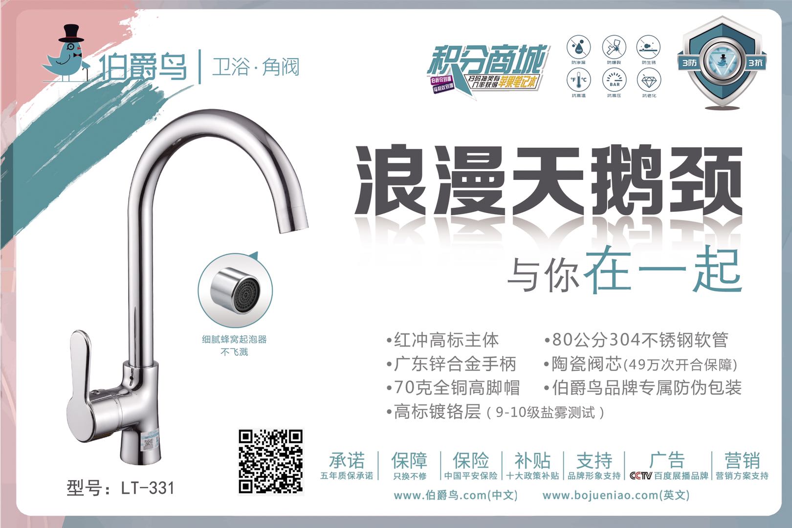 伯爵鸟高标不锈钢镀铬菜盆龙头LT-331